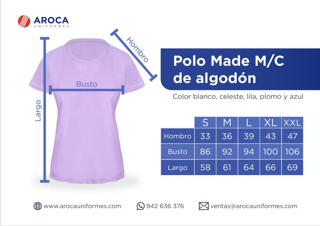 Polo modelo made de dama de tela de algodón. Cuenta con cuello redondo y mangas cortas. La tela la convierte en una prenda suave, ventilada y durable. Por el estilo casual y cómodo, la prenda es ideal para el servicio doméstico, área médica, cocina y catering. Especificaciones: Cuello redondo y manga corta.